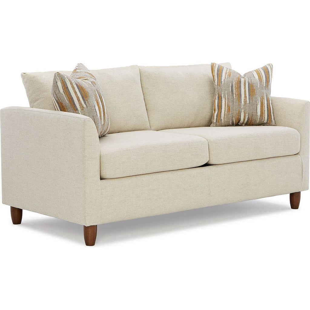 The Bayment Collection features a wide array of sleeper choices, including a sofa available as a queen or full size,... The Bayment Collection features a wide array of sleeper choices, including a sofa available as a queen or full size, and a twin size chair and a half. This ensures an option that will fit any home and is perfect for that individual who loves to entertain or is a great addition for any vacation home. This versatile collection allows for entertaining and relaxation during the day, and easily transforms to a deep-sleep comfortable bed for overnight stays. All sleepers are available with either a deluxe innerspring or memory foam mattress providing a comfortable sleep for your overnight guests. Loose back cushions are filled with plush pillow fibers and feature zipper access for easy adjustments, and allows for that "new-look" for years to come.The Bayment Collection features thin, beveled arms that are accented with elegant French seaming. Each sleeper and it's included toss pillows can be personalized with our wide variety of over 700 fabrics. The sleek, turned wooden legs are available in Dark Walnut, Riverloom or Espresso finishes.Twin Size: H: 34" x W: 49" x D: 35.5"Full Size: H: 34" x W: 69" x D: 35.5"Queen Size: H: 34" x W: 77" x D: 35.5" View more