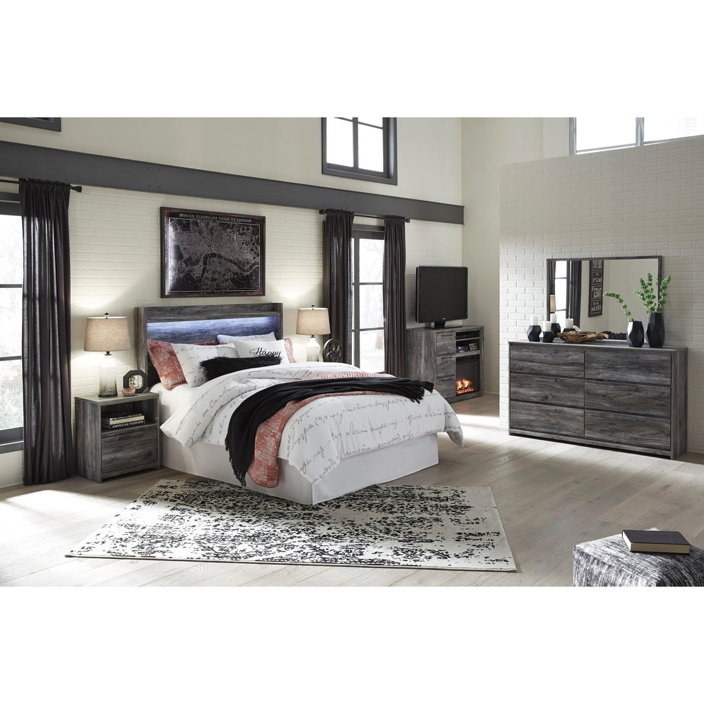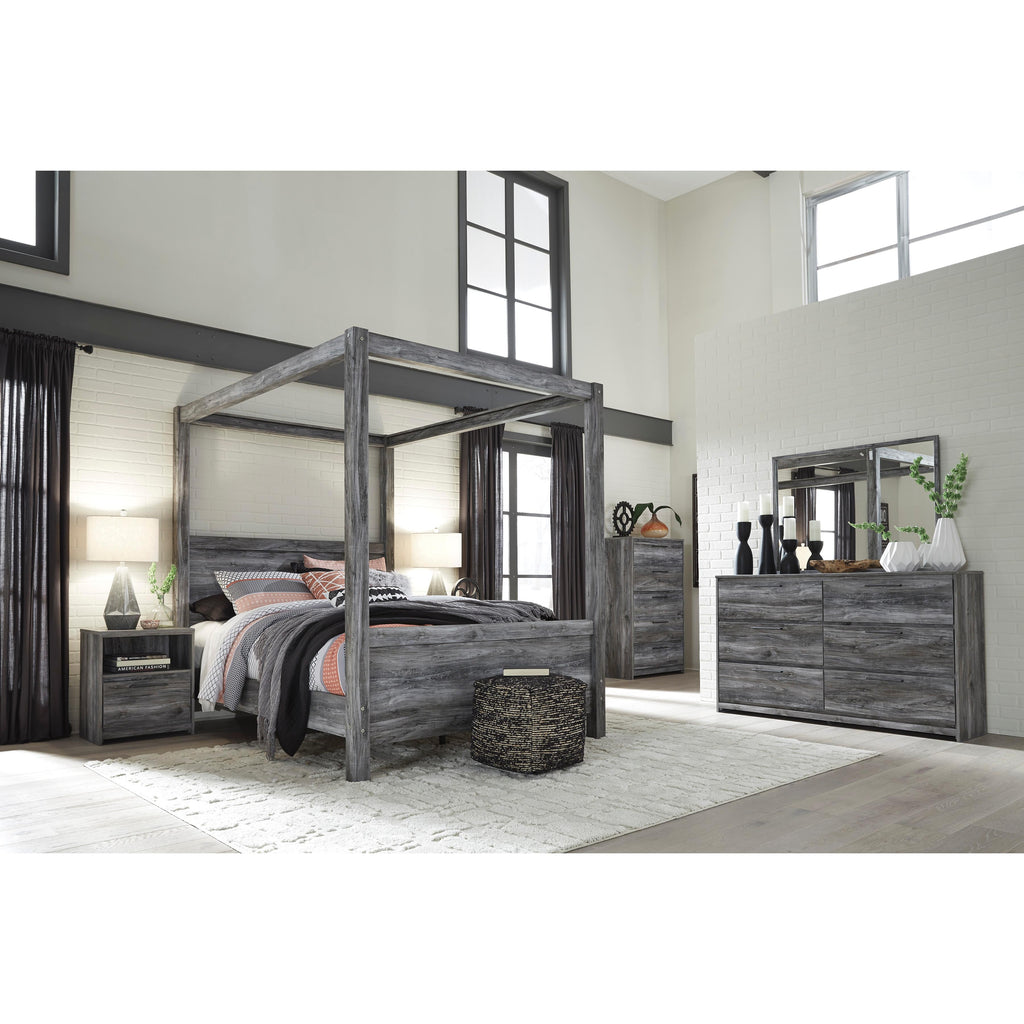 • Smoky gray finish over replicated oak grain