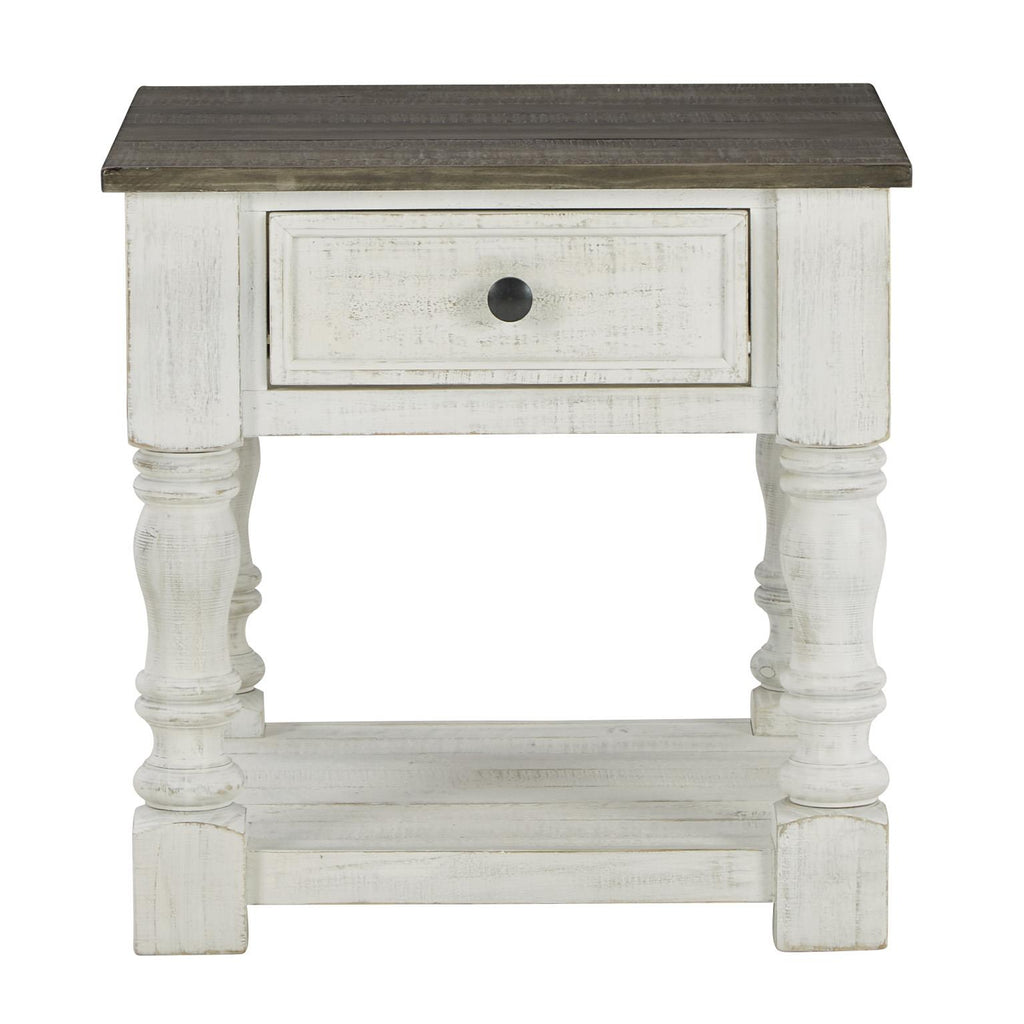 • Two-tone finish; distressed weathered gray top with distressed vintage white base