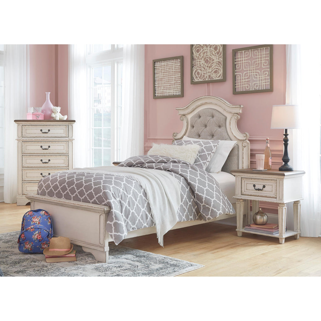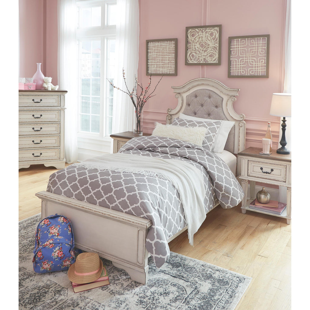 • Includes upholstered headboard, footboard and rails