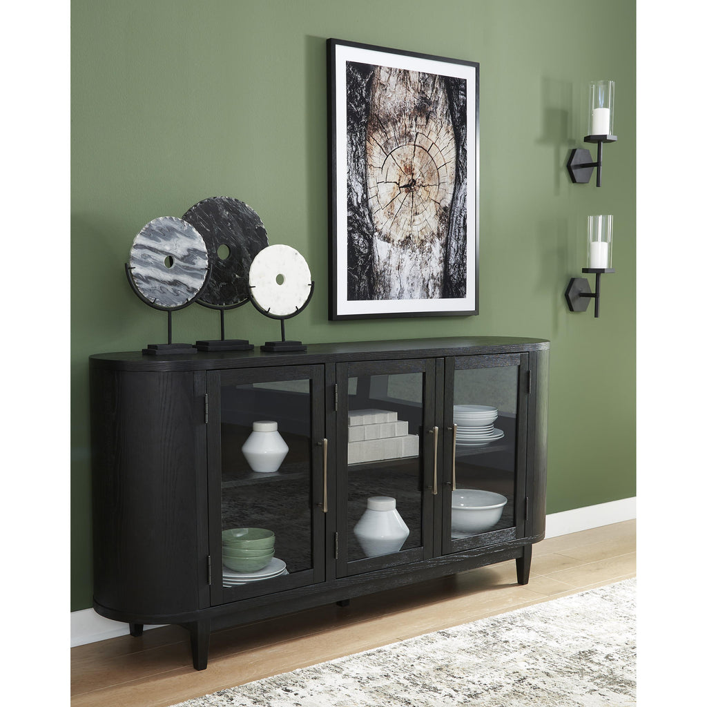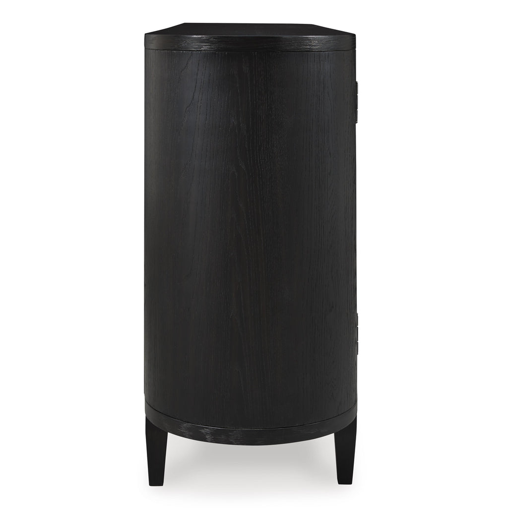 • Black finish on textured wood grain surface